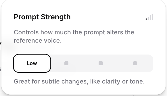 우측 상단에 [Medium]이라고 적힌 버튼(신호 세기 아이콘)을 누르면 아래와 같이 Prompt Strength를 조절할 수 있습니다.