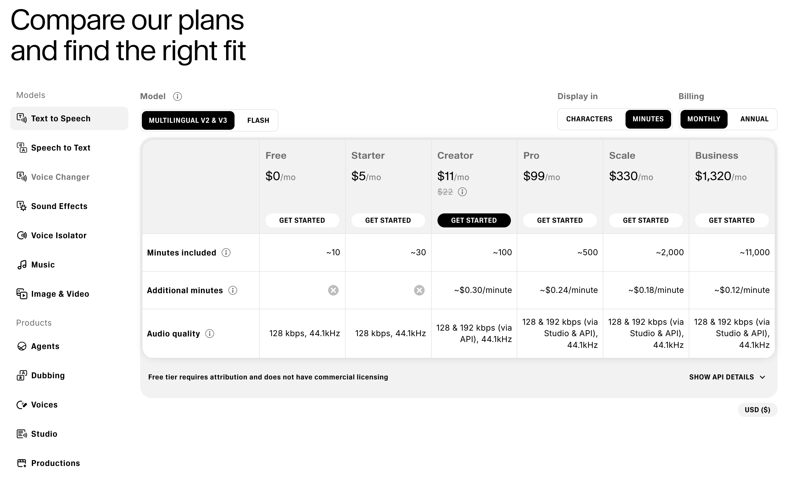 일레븐랩스는 무료 사용자에게 "Requires attribution(출처 표기 필수)"와
