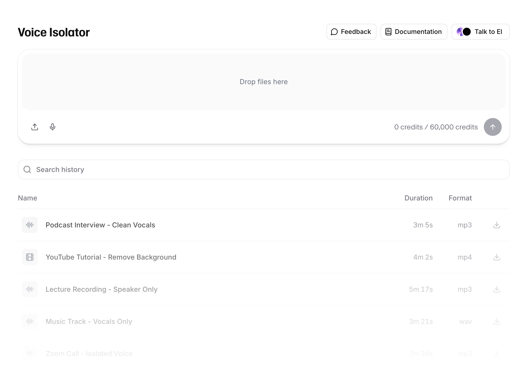 Step 1. 메인 화면 왼쪽 메뉴에서 [Voice Isolator]를 클릭합니다.